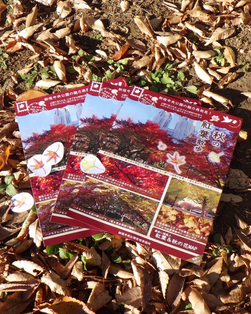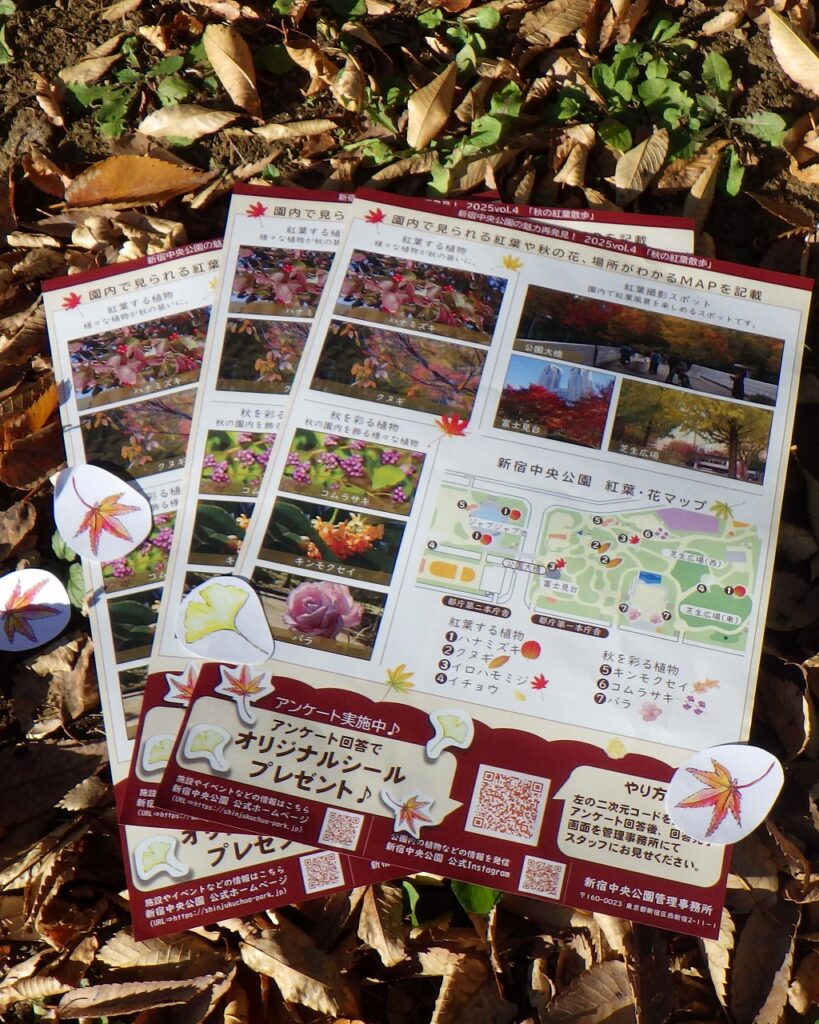 園内のチラシラックでは紅葉の散歩が楽しくなる
