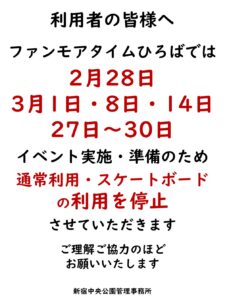 2/28、3/1・8・14・27~30 ファンモアタイムひろば 通常利用停止