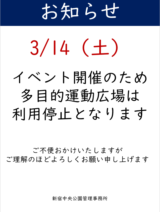 2/28、3/1・8・14・27~30 ファンモアタイムひろば 通常利用停止