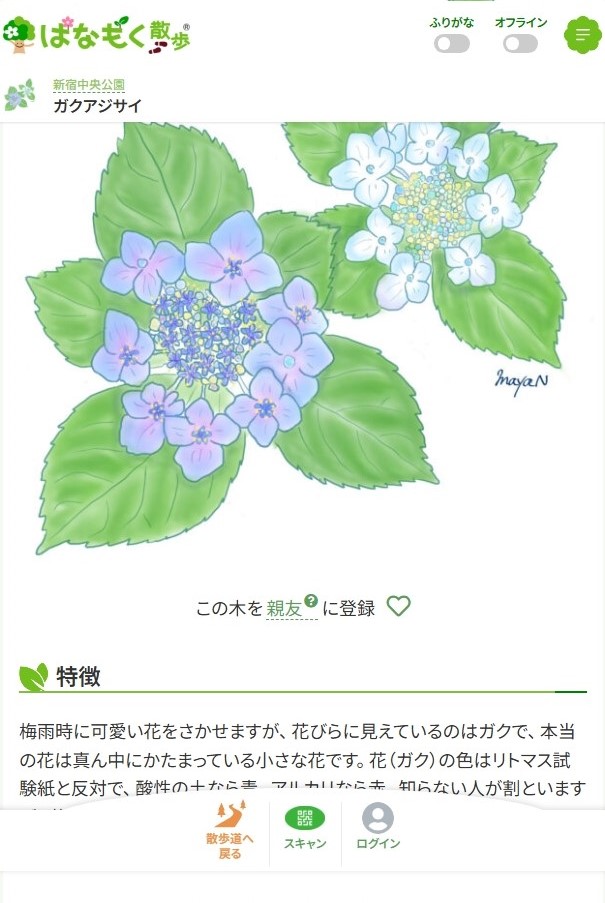 ▲ガクアジサイ二次元コード読み取り後 ▲新宿中央公園デジタルマップ