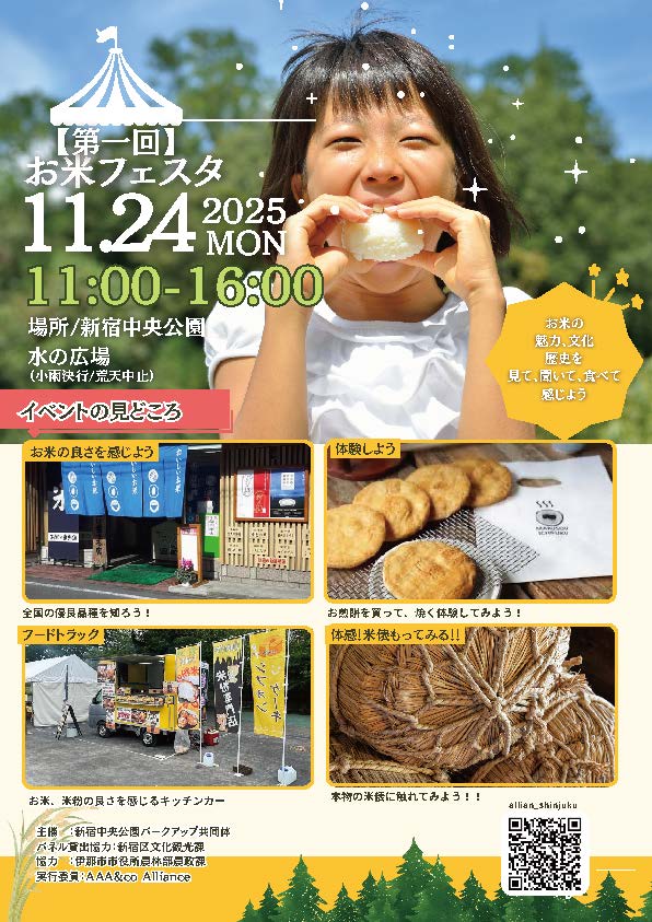 全国のお米や米粉の魅力を「見て・食べて・体験」できるイベントを開催♪ お煎餅焼き体験・米俵に触れる体験やキッチンカーでのお食事が楽しめます。