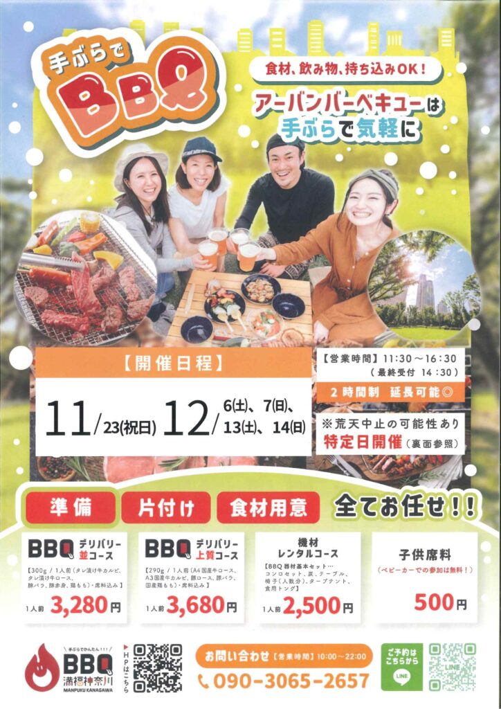 準備・食材・片付け 必要なし!手ぶらで楽しめるバーベキューイベントです。